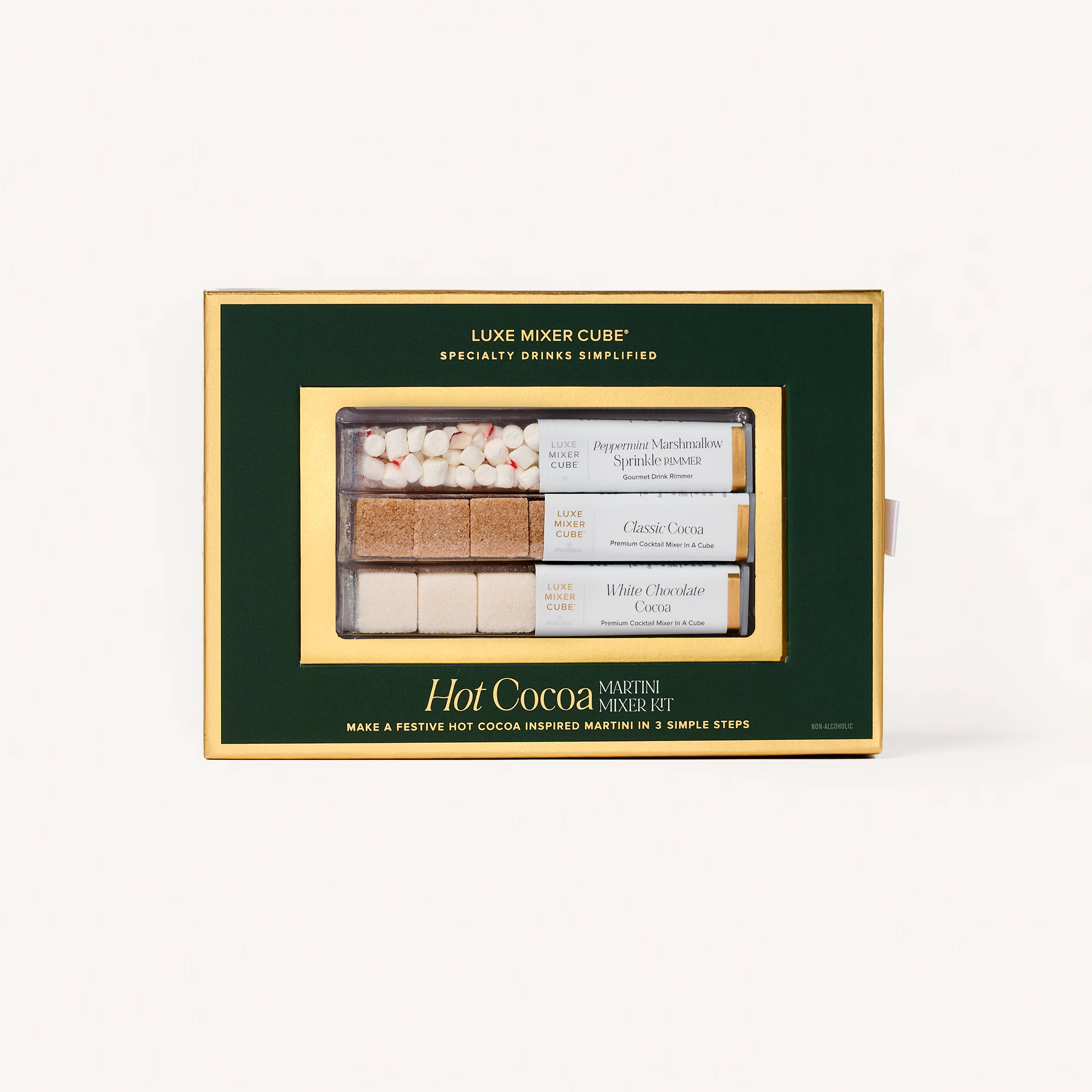 Enjoy a twist on a classic winter favourite with two delicious cocoa cocktails. Curated to make two holiday-inspired martinis with just vodka, this kit makes it easy—just drop, mix, and muddle for a creamy, dessert-style martini complete with a buttery peppermint rimmer.