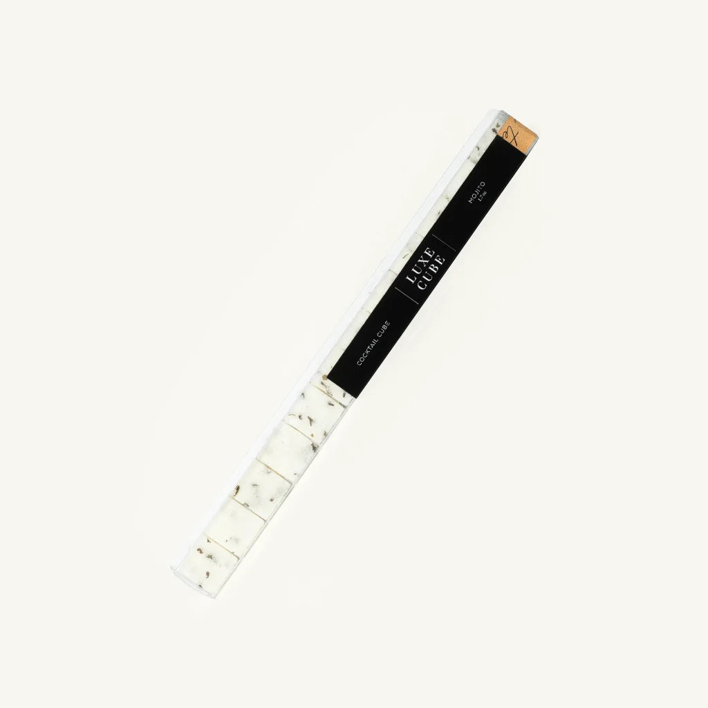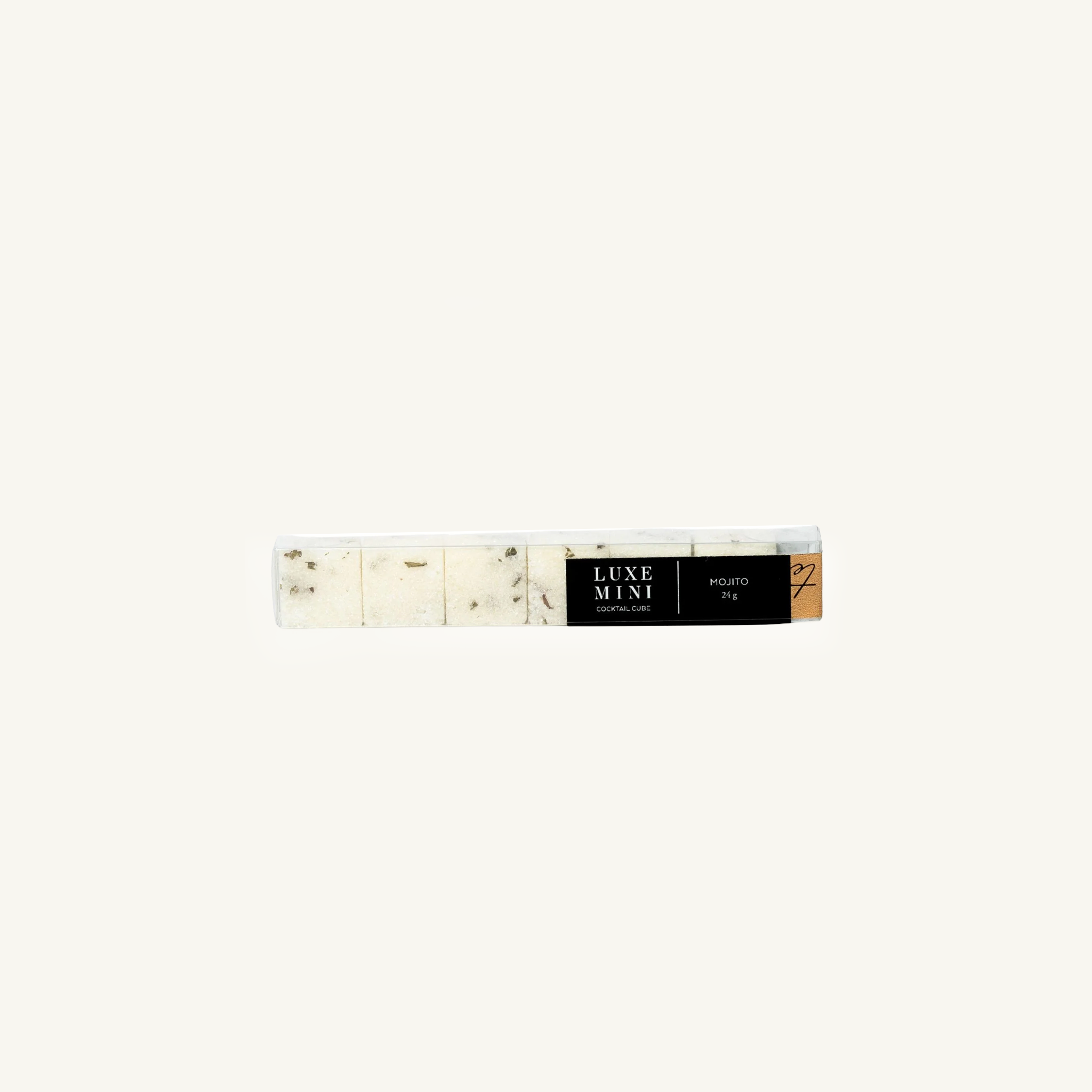 MOJITO:1 or 2 LUXE Mojito Cubes muddled in 2oz of water + 2oz of white rum + splash of club soda.